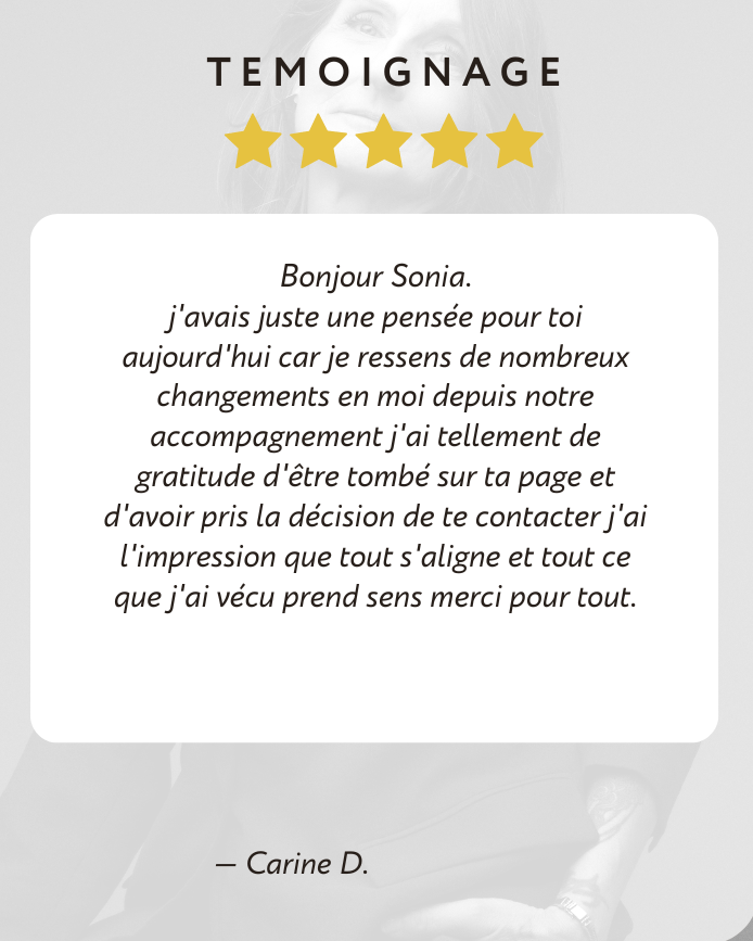 Vous repartez avec des prises de conscience, des clés de compréhension et un plan d’action clair pour continuer votre évolution après la séance.
